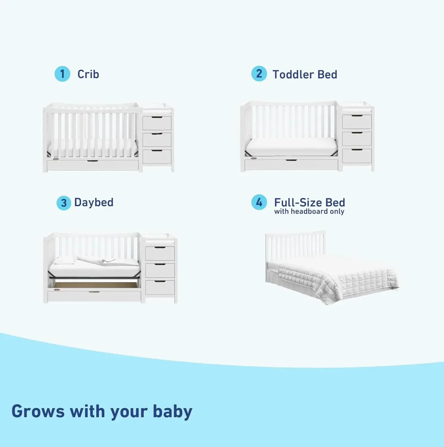 Cuna convertible y cambiador Graco Remi 4 en 1 con cajón blanco: combinación GREENGUARD Gold certificada, cuna y cambiador de mesa, incluye cambiador, se convierte en cama para niños pequeños, cama de tamaño completo